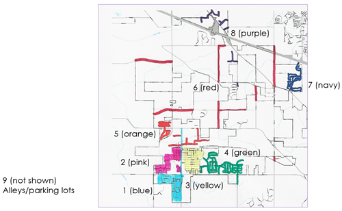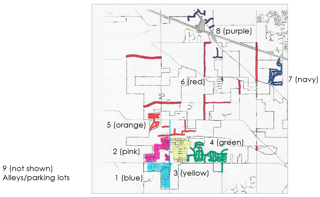 During the winter season, the Public Works staff works tirelessly to provide safe travel throughout the village and cost effective clearing and removal of ice and snow from Village streets and parking lots via 9 snow plow routes. Plowing and salting of streets falls under the responsibility of multiple agencies, including the Village, Hampshire Township, Kane County, and Illinois Department of Transportation (IDOT). The following map shows which roads are the responsibilities of the various agencies.